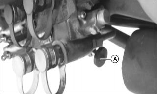 2. Note location of tire valve stem (A). Install rods through square holes in rim center as shown.