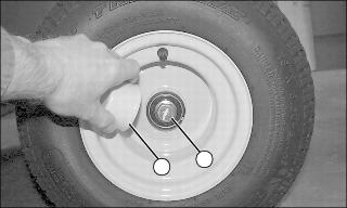 2. Install wheel assembly with valve stem to the outside and align slot in wheel assembly with key in axle shaft.