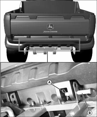 NOTE: Lift front of cargo box high enough to allow lock pin to clear engine panel when positioning the cargo box for assembly.