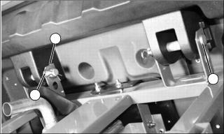 2. Position cargo box onto machine frame so hinges are aligned with rear most set of pivot holes.