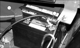 8. Connect black negative cable (B) to negative (-) battery terminal. Tighten the connection.