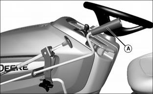 • Turn handle (A) counter-clockwise to rotate chute to the right.