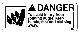 To avoid injury from rotating auger, keep hands, feet and clothing away.