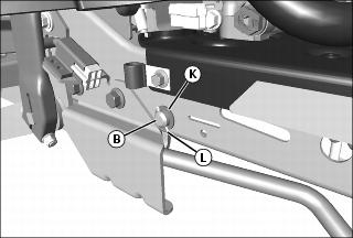 6. Secure right side of rockshaft (B) with bushing (K) and M2.5x20 cotter pin (L).