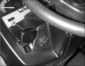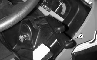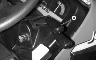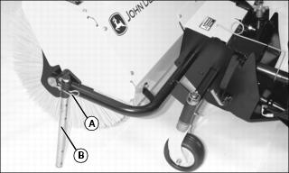 Run engine at idle speed. Pull rearward slowly on lower hydraulic control lever (A) until broom is at desired height. Release lever.