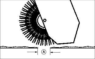 8. Check area of brush-to-surface contact (A). Cleared area should be 51-102 mm (2-4 in.) wide along entire width of broom. If not, adjust brush contact area.