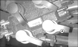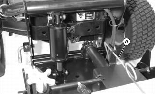 5. Turn SCV lockout valve (A) clockwise completely to close the valve. This prevents hydraulic flow to mower and rear implement lift and directs full pressure to the broom hydraulic circuits for best performance.