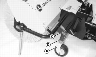 • If broom is not level, determine how far you need to raise or lower the broom wheels to level the broom, and adjust the broom wheel height.