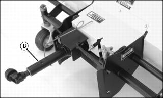 4. Swing shaft support toward center of broom frame and position as shown. Place the PTO shaft (B) in the support.