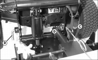 6. Pull both L-pins (D) outward and turn to unlocked position with roll pins in grooves.