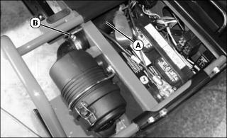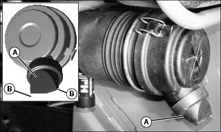 2. Locate dust unloading valve (A) attached to the front of the air cleaner canister.