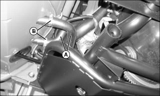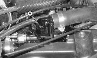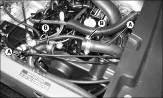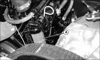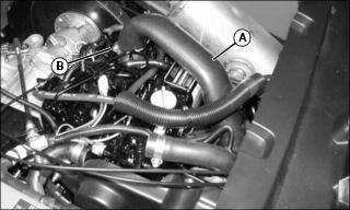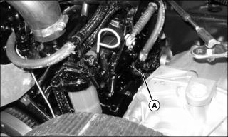 6. Check radiator hoses (A) connected to the engine for damage or cracking. Replace if necessary.