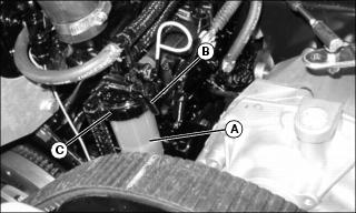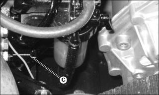 7. Loosen engine block drain (C) near engine oil filter. Allow coolant to drain into a container.