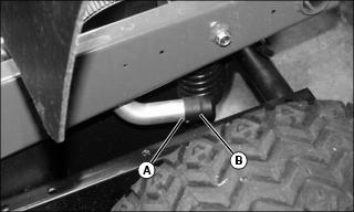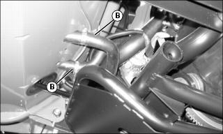 3. Remove screw (A) securing spark arrestor (B) to muffler exhaust pipe. Retain the screw.