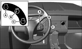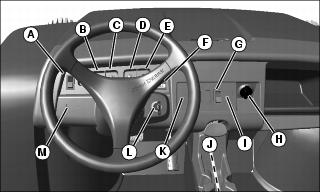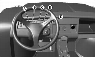 C - START Position - Turn key to start position to start the engine. Release key after engine has started and it will automatically return to the on position. The engine will continue to run. With the key released into the on position (the engine running), the hour meter will display the accumulated hours.