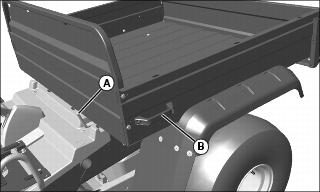 2. Raise tailgate slightly and rotate latch rods to disengage from slots (B) in cargo box sides.