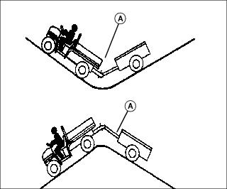 IMPORTANT: Avoid damage! Extreme angles such as high railroad crossings can place high bending loads on hitch connection (A). Traversing terrain where the preceding conditions exist, use a ball or pintle type hitch.