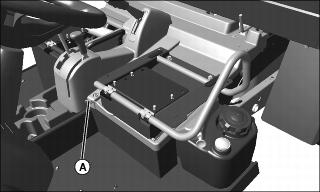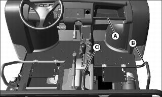 Hand holds are provided for passenger balance. When a passenger is present, they shall use two of the three hand holds at all times while the machine is moving. The dash bar (A), side rail (B), and grab handle (C).