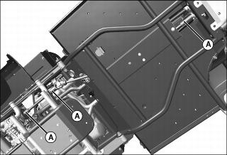 Lubricate three grease fitting (A) on drive line with one or two shots of grease.