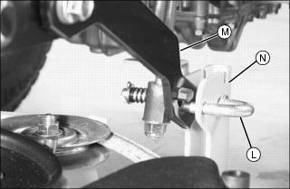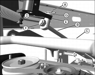 IMPORTANT: Avoid damage! If the mower engagement rod is not adjusted properly, the mower belt may slip or drag on blade sheave resulting in belt damage.