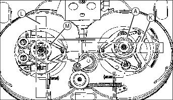 14. Insert spring locking pin (M) into drilled pin (K).