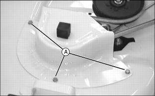 2. Check that deflector cup (A) is properly seated between mower spindle and blade.