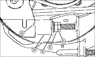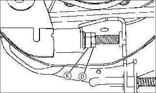 3. If pin (D) does not line up, loosen lock nut (F) and turn pin until pin slips freely into hole. Tighten lock nut.