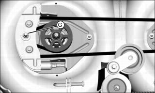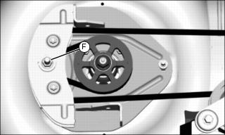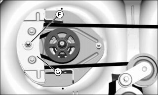 8. Remove belt from engine drive sheave (F) and belt guides (G).