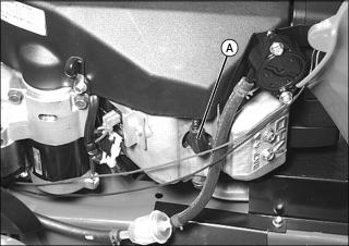 5. Remove nylon drain cap nut (A) and drain oil into drain pan. Allow oil to drain completely.