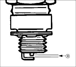 8. Check plug gap (B) with a wire feeler gauge. To change gap, move the outer electrode.