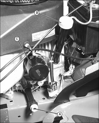 7. Wipe dirt from around oil filter (C).