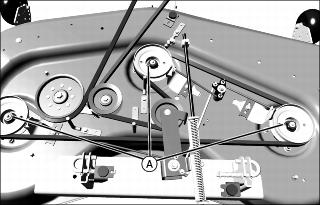 · Lubricate mower spindle grease fittings (A) with two pumps of grease at specified interval.