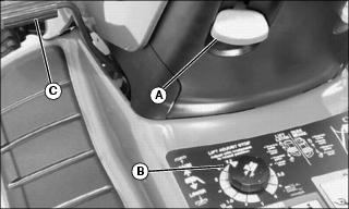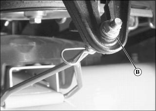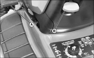 4. Turn mower cutting height knob (B) to desired cutting height. Mower will be at that approximate cutting height when it is lowered.