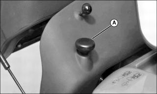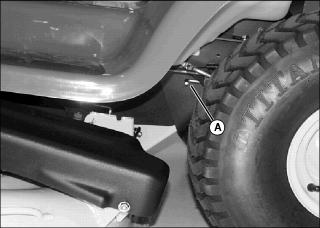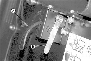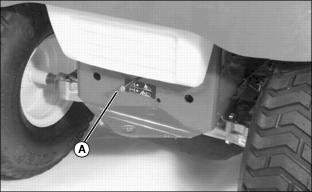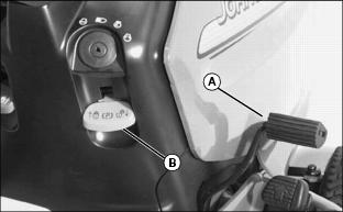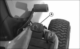 3. Push lift pedal (A) to raise mower deck to highest (transport) position.