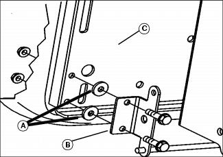 · Add washers (A) between latch bracket (B) and grass collector back plate (C) to tighten latch and sealing capability.