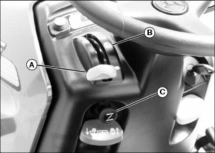 IMPORTANT: Avoid damage! The transmission might be damaged if the free-wheeling lever is not pushed back to operating position before attempting to start the engine. Do not start or operate the machine with the free-wheeling lever in the push position.