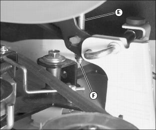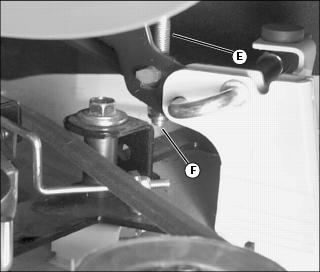 11. If lever does not lock, lower the mower deck, and adjust lift links (E).