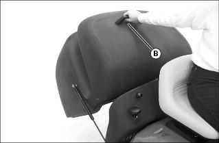 3. Move latch (B) up or down to adjust audible sound for desired fill.