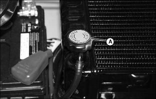4. Loosen and remove radiator cap (A) slowly to release all pressure, then tighten cap.