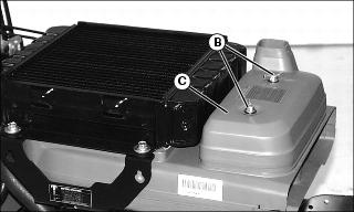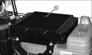 3. LX289 Only - When operating in extremely dirty conditions, remove air intake screen and clean radiator screen (C).