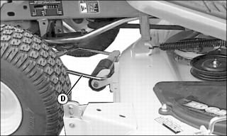 9. Hook front lift rod assembly (D) into mower bracket.