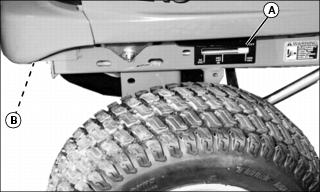 2. Turn adjusting bolt (B) at front of machine frame to adjust lift assist spring: