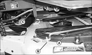 5. Remove mower belt (C).