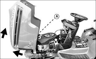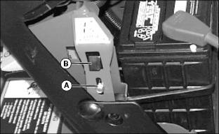 1. Align hood pivot studs (A) with pivot brackets (B) and install hood.