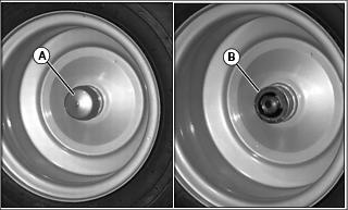 Picture Note: Wheel may or may not have a cap (A) to remove when removing the wheel.