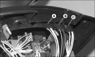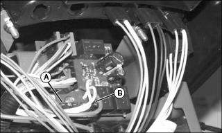 4. Push red cover (B) away from positive (+) battery terminal and remove cable from battery.