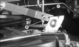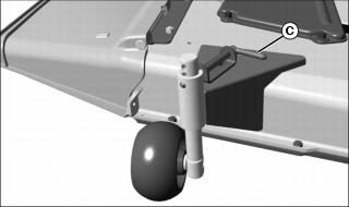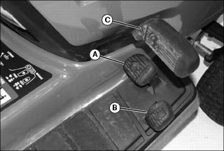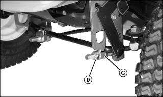 · 54 Inch Mower - Pull pin (C) outward and move wheel to proper hole position. Release pin to lock wheel in position.