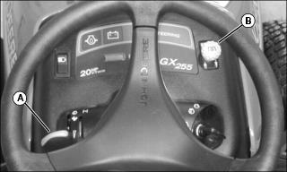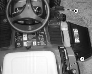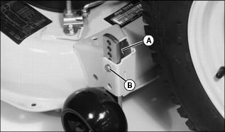 · 48 Inch Mower - Remove spring locking pin (A) and drilled pin (B). Move wheel to proper hole position. Install pins.