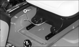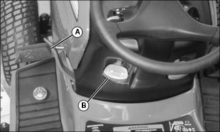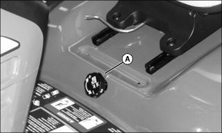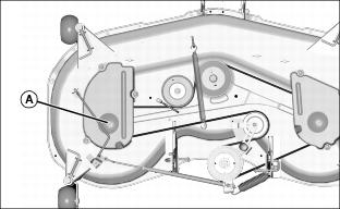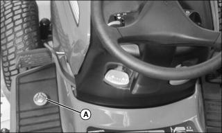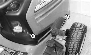 NOTE: Mower wheels can be adjusted in 13 mm (1/2 in.) increments. See decal (A) located on deck.