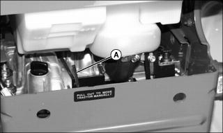 2. Push traction assist pedal (A) down to the foot rest. Traction assist will remain engaged as long as pedal is depressed.